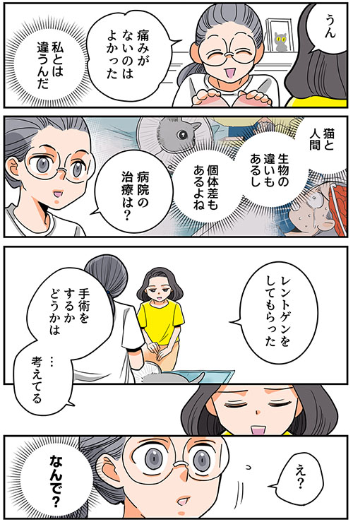 くも膜下出血の短編集【22】猫が脳卒中になる話⑤ 2025年06月18日 はじめから読む前の話を読む つづく Kindle Unlimited(定額読み放題)でまとめ読みできます!描き下ろしは、病院から緊急電話があった時の「家族視点」のお話です。ぜひ読んでください!読者登録でマンガ更新通知をお届けブログの記事更新通知を、ライブドアの新アプリで受け取れるようになりました!ダウンロード、通知を受け取るには下記バナーを↓↓↓クリック↓↓↓【フォローまでの手順】1.下のバナーをクリック2.アプリストアにて「ライブドアアプリ」をダウンロード3.アプリの虫眼鏡ボタンからブログ名を検索もしくは、下のバナーをクリック4.アプリ内でブログが表示されたら右上の「フォローする」をクリック5.通知が届く、フォロー一覧にブログが表示ほかのマンガが読めます! 「【短編】くも膜下出血」カテゴリの最新記事 タグ :#くも膜下出血#マンガ < 前の記事次の記事 > コメント コメントフォーム 名前 コメント 評価する リセット リセット 顔 星 投稿する 情報を記憶